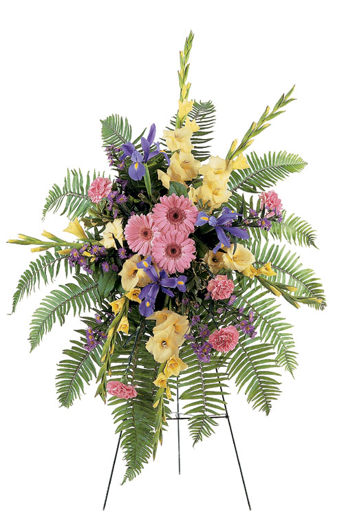 If you want to send a message of hope, this lovely spray with its pink, yellow and lavender flowers sends it harmoniously. Aprox 34W X 44H